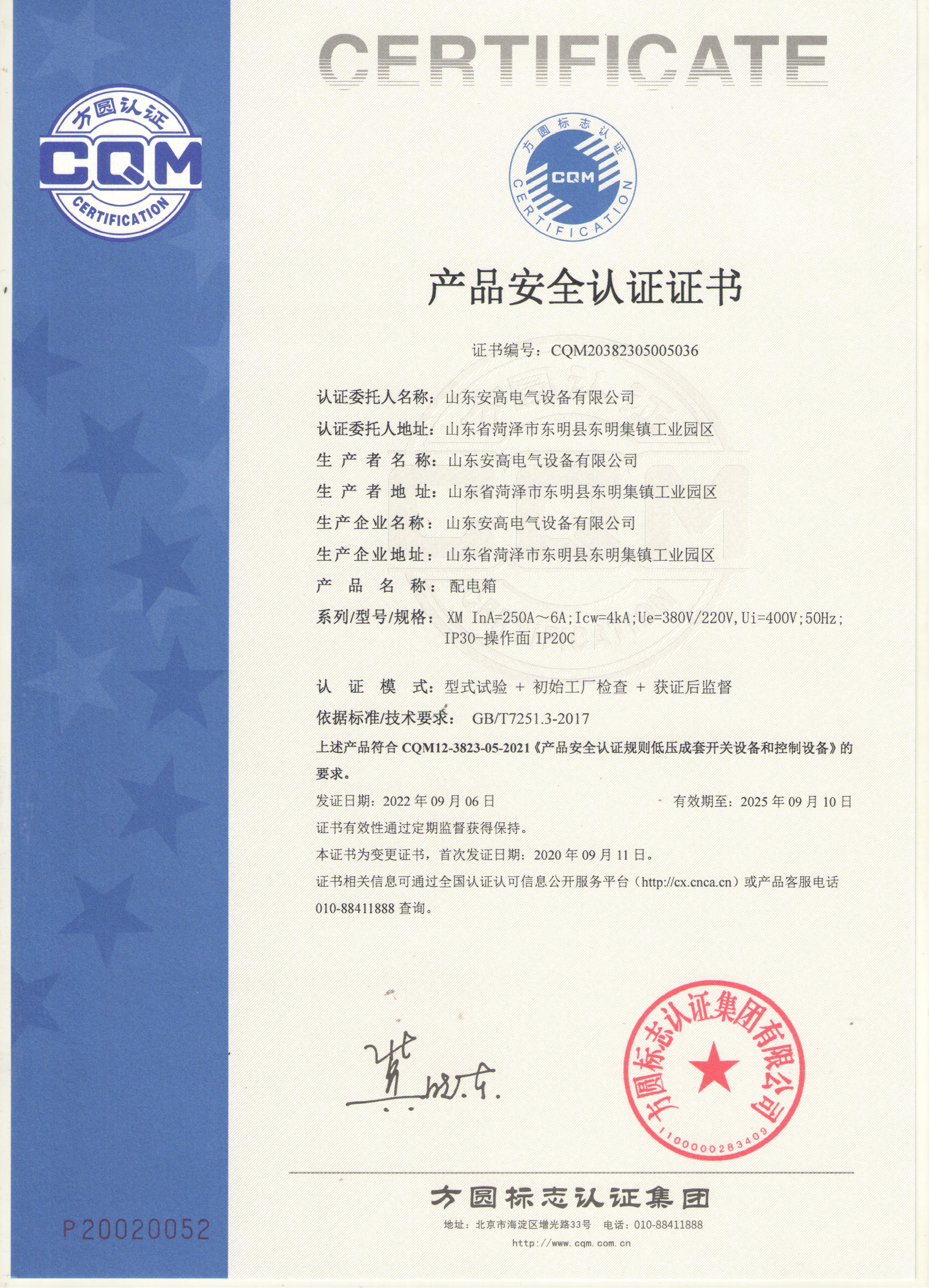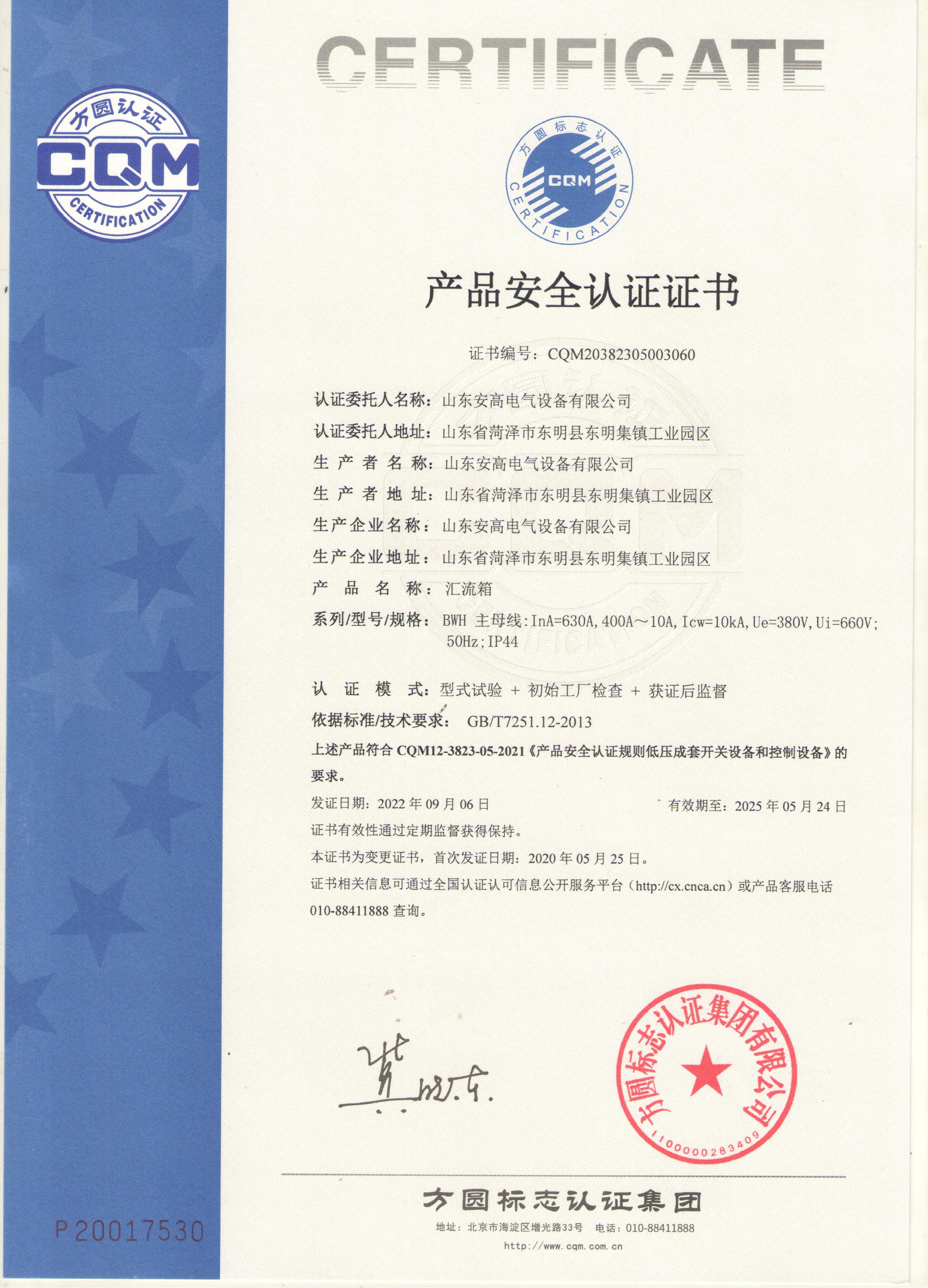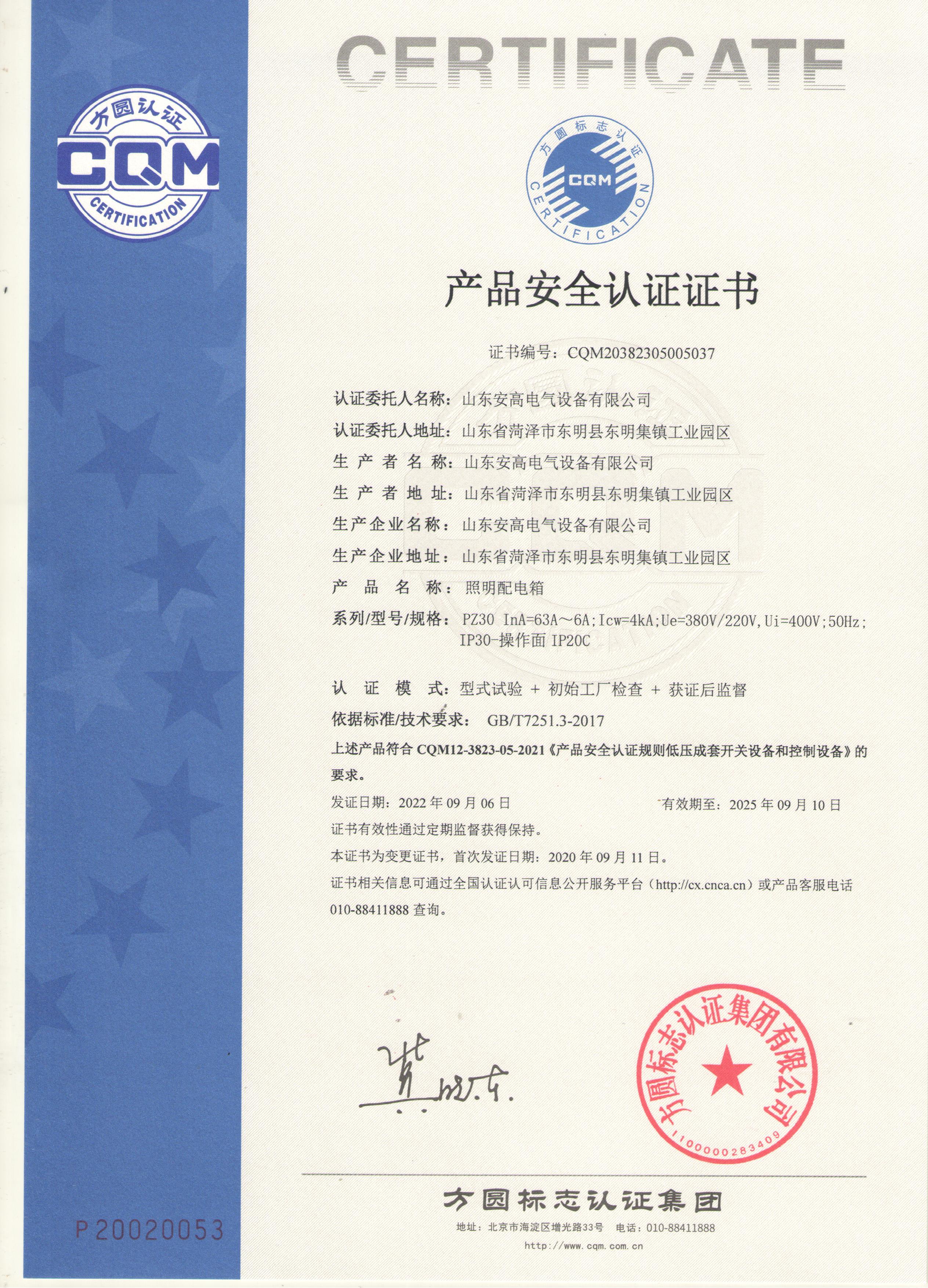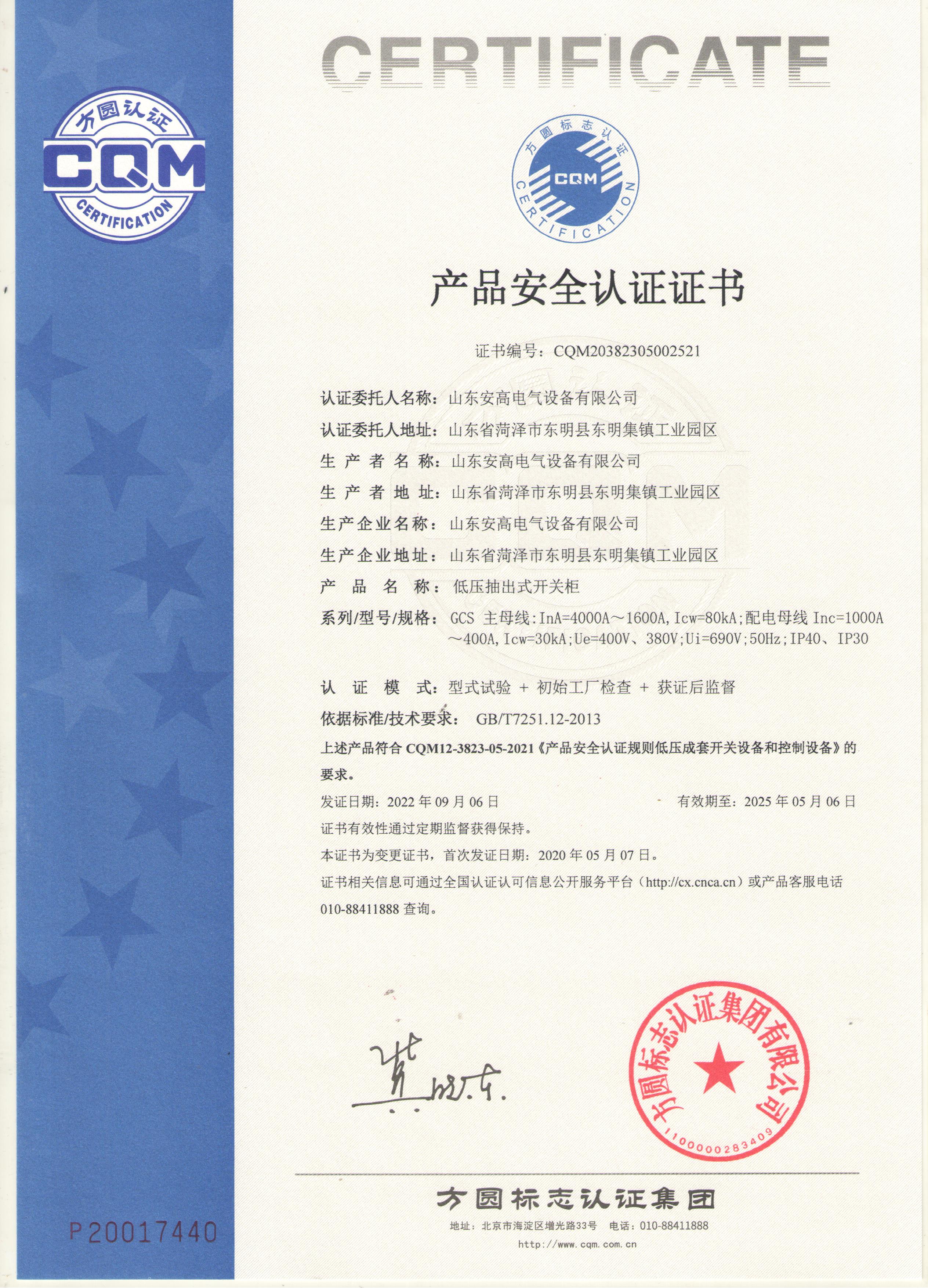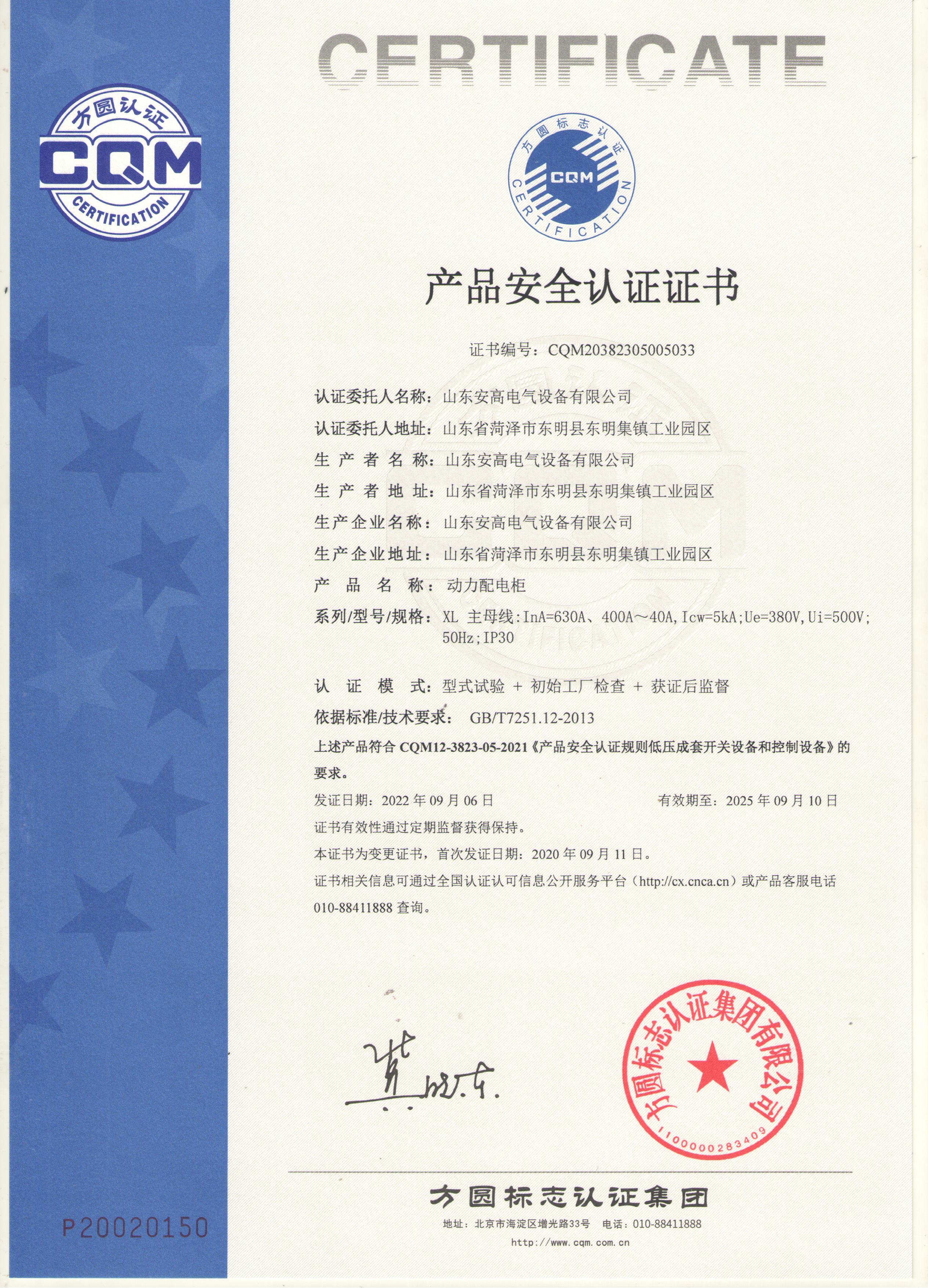 • 產(chǎn)品安全認(rèn)證證書